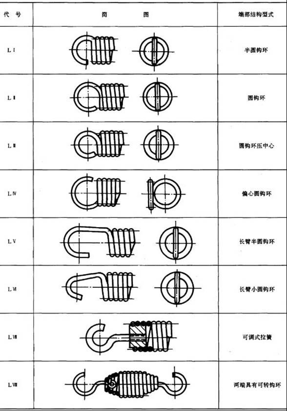注:彈簧結(jié)構(gòu)型式推薦采用半圓鉤環(huán)、圓鉤環(huán)、圓鉤環(huán)壓中心型。